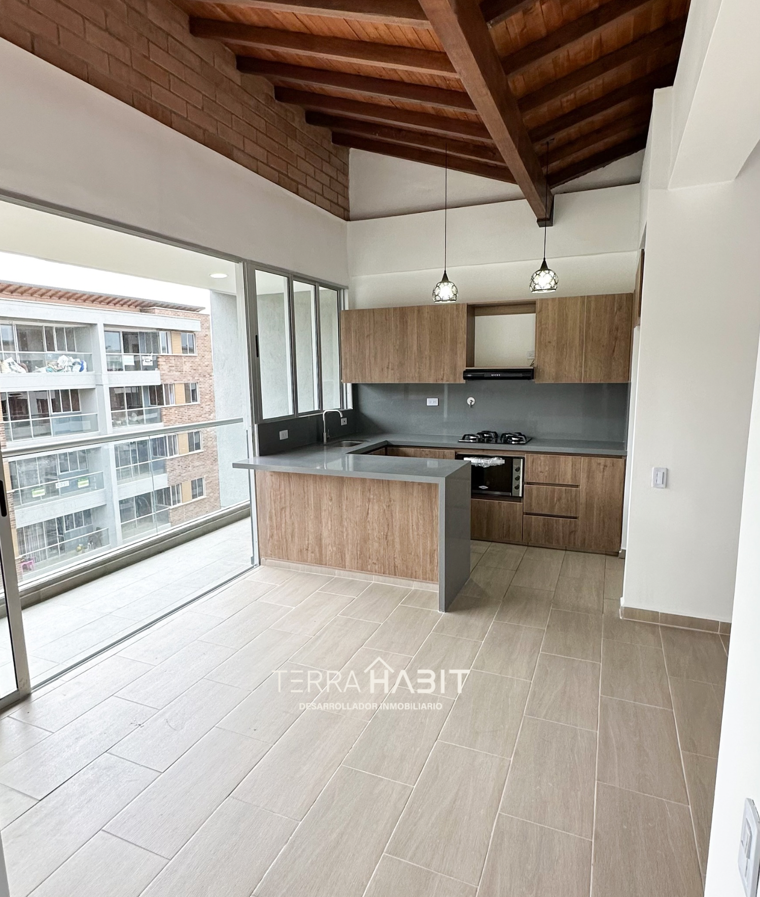 Moderno apartamento para estrenar. Ubicado en las afueras del municipio de la Ceja, brinda a sus habitantes un entorno tranquilo. El apartamento en unidad cerrada cuenta con salón comedor, cocina abierta, amplio balcón con vistas al interior de la unidad, área de lavandería, habitación principal con baño y vestier, 2 habitaciones auxiliares con clóset, baño completo, parqueadero y cuarto útil. La unidad tiene portería 24 horas, zonas sociales como cancha de microfútbol y basquetbol, zona de mascotas y BBQ. Para este año se espera que se habiliten nuevas zonas sociales.