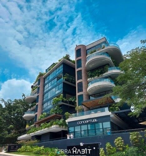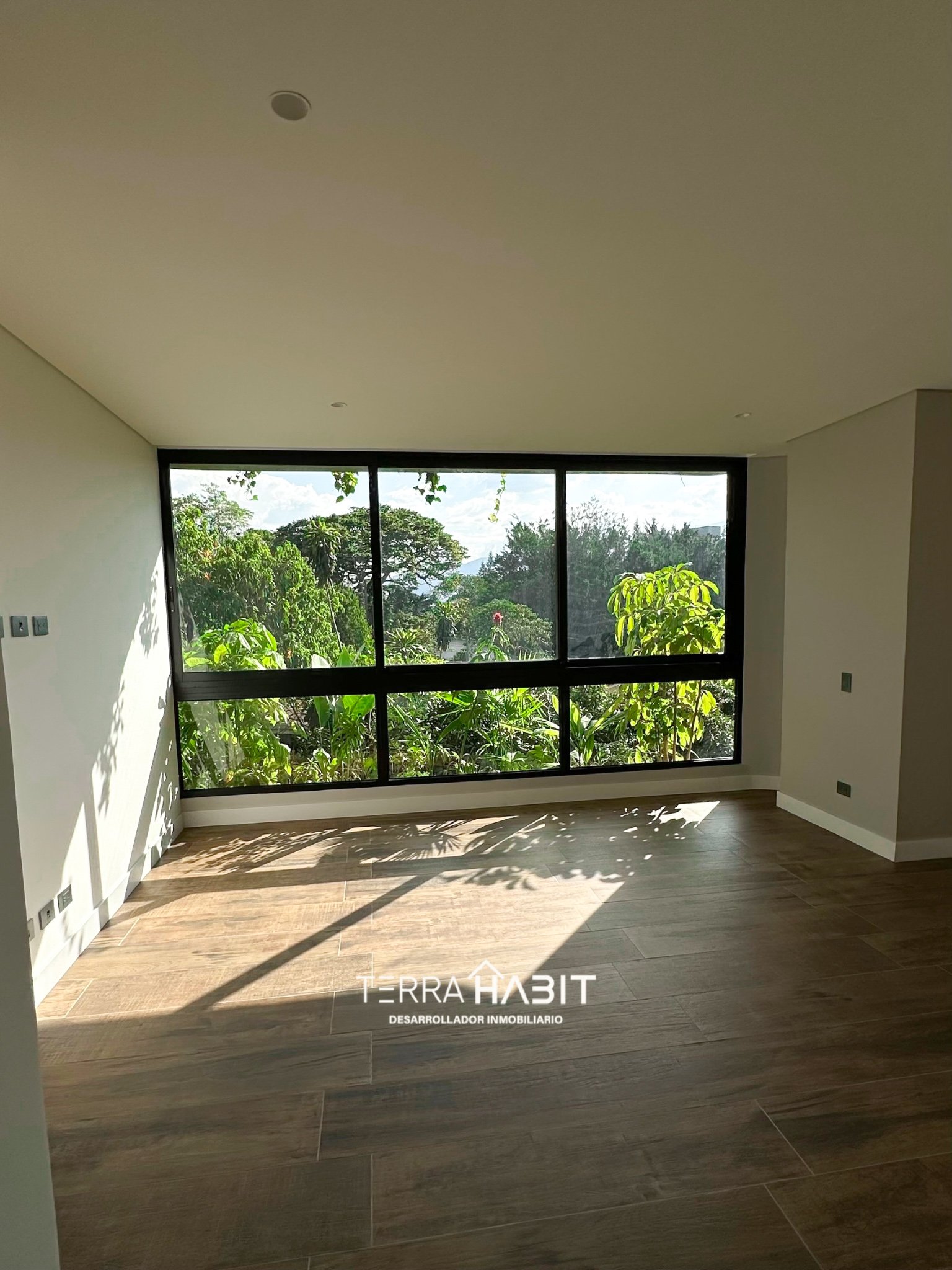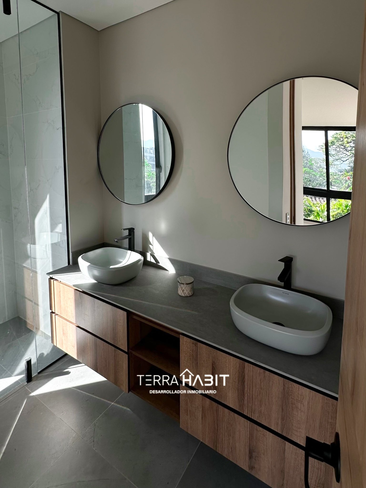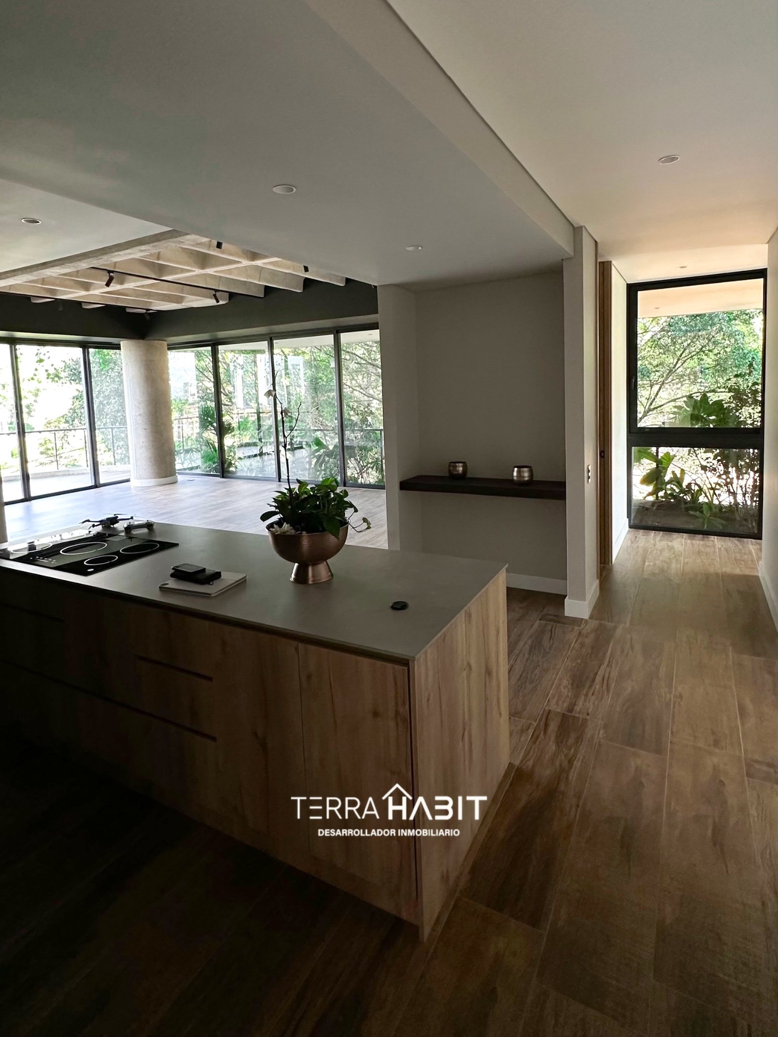 Apartamento ubicado en un exclusivo sector de Medellín, con un área de 202,62 m2. Cuenta con un amplio balcón con hermosa vista, un jardín colgante, cocina abierta, sala, comedor, habitación principal con baño y vestier, segunda habitación con baño y clóset, habitación de servicio con baño, zona de ropas, baño social, 3 parqueaderos y cuarto útil.