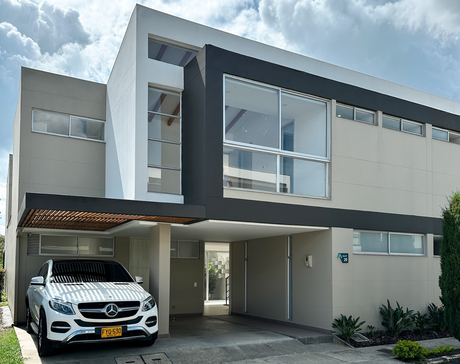 La propiedad ubicada en esquina nos recibe con un jardín, dos parqueaderos cubiertos y un cuarto útil.