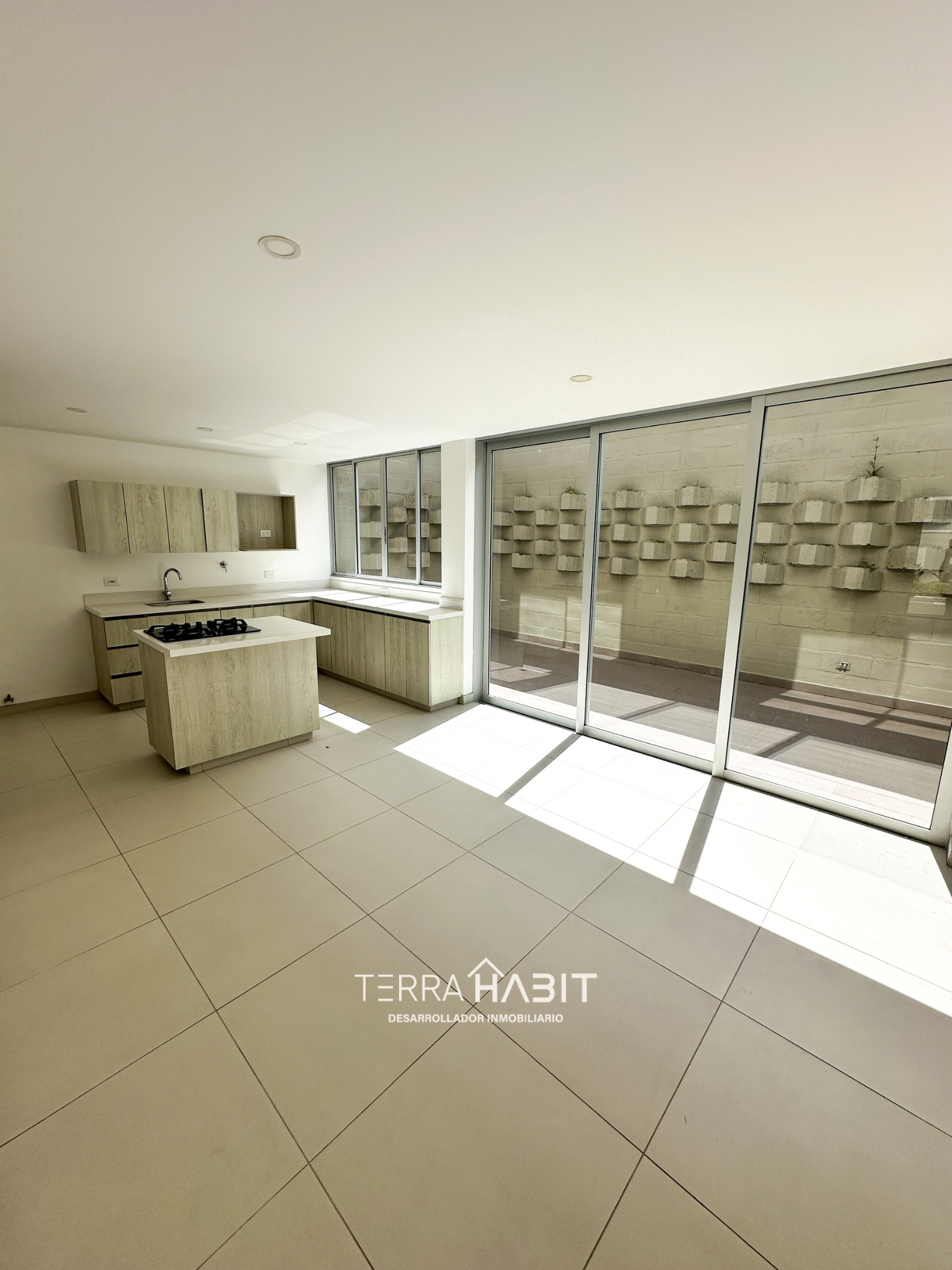 el salón comedor, una moderna cocina integrada con la zona social, habitación auxiliar