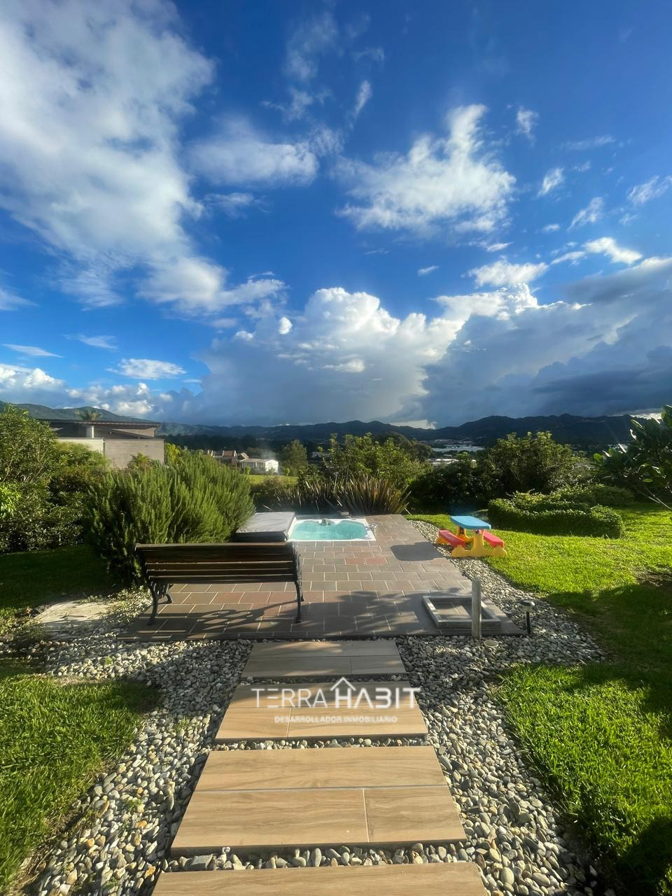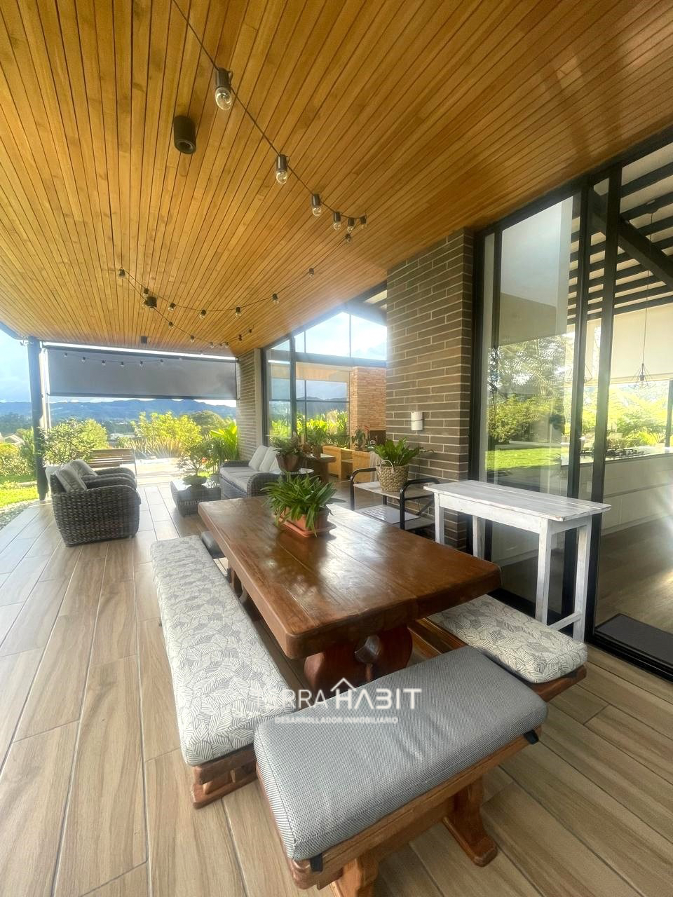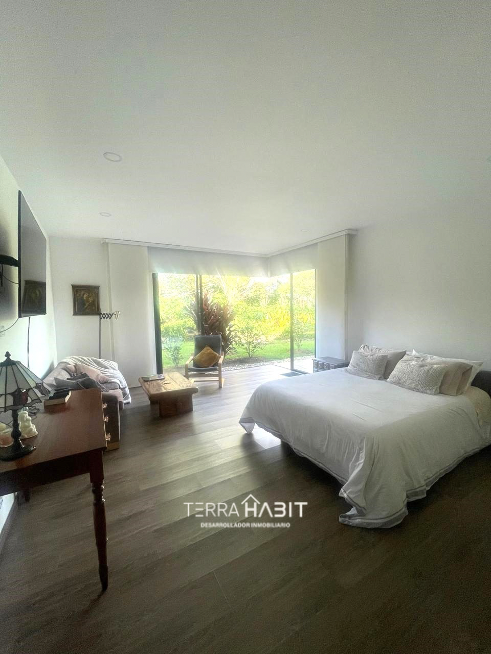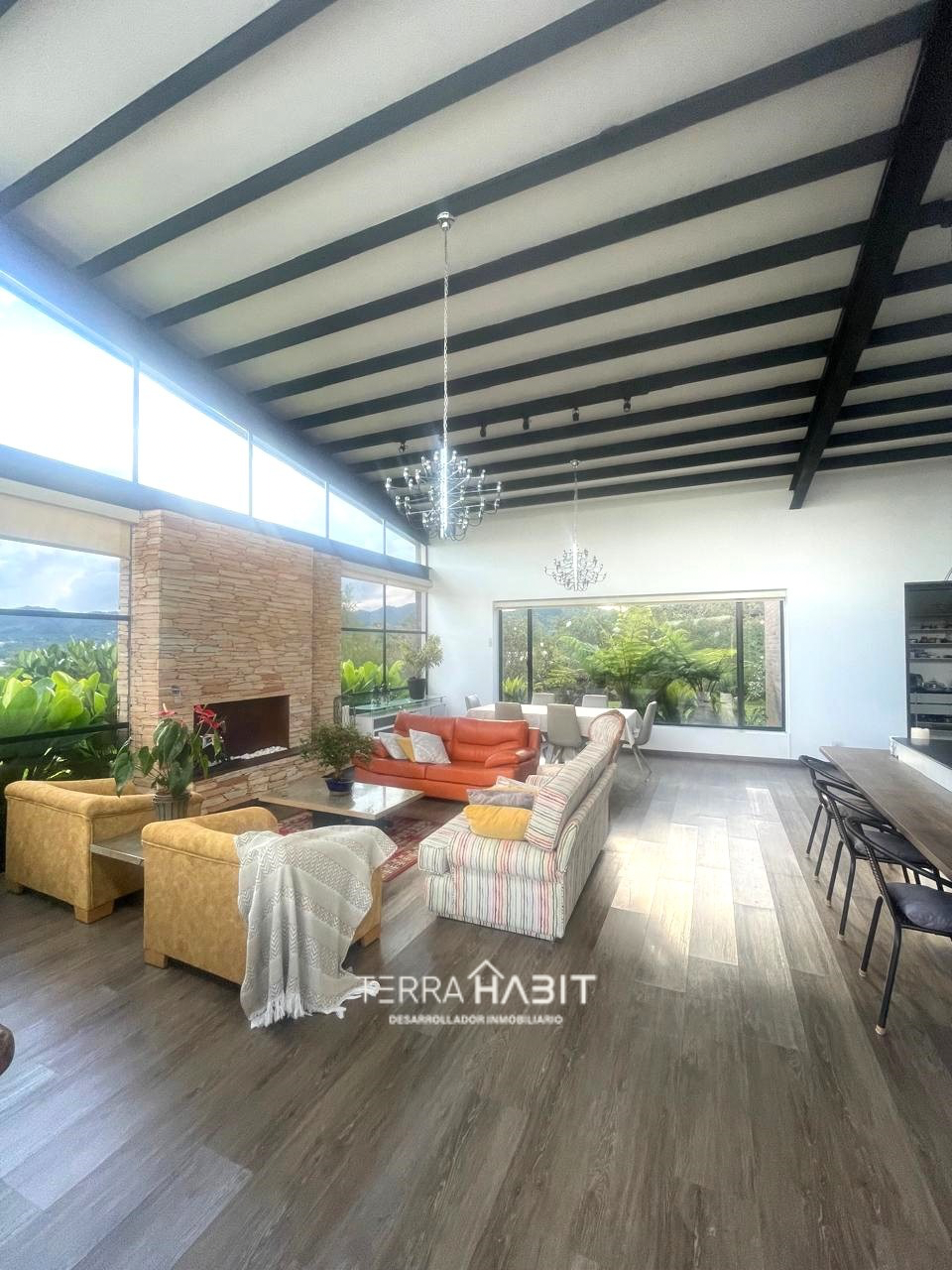 Exclusiva casa en Parcelación en la Ceja. En medio de un ambiente tranquilo y natural con una hermosa vista al Capiro. La propiedad con un área construida de 458 m2 cuenta con un amplio salón comedor con chimenea a gas, amplios ventanales que permite acceder a la hermosa vista que brinda el entorno, moderna cocina abierta, alacena, zona de lavandería, patio, 3 habitaciones con baño, vestier y terraza, estudio con baño completo, habitación de servicio con baño y clóset, clóset de linos, baño social, amplios corredores, terraza exterior con pérgola, jacuzzi, árboles frutales, garaje cubierto para 3 carros.